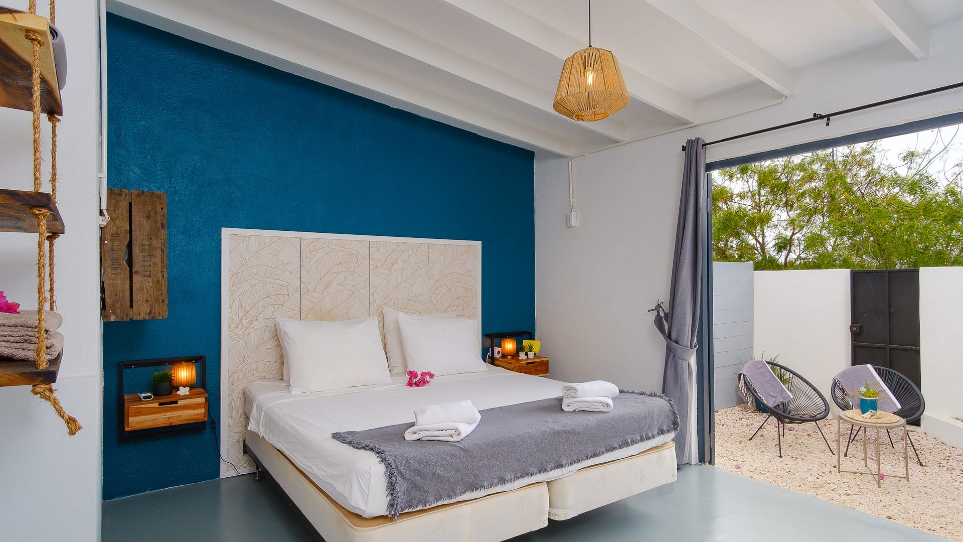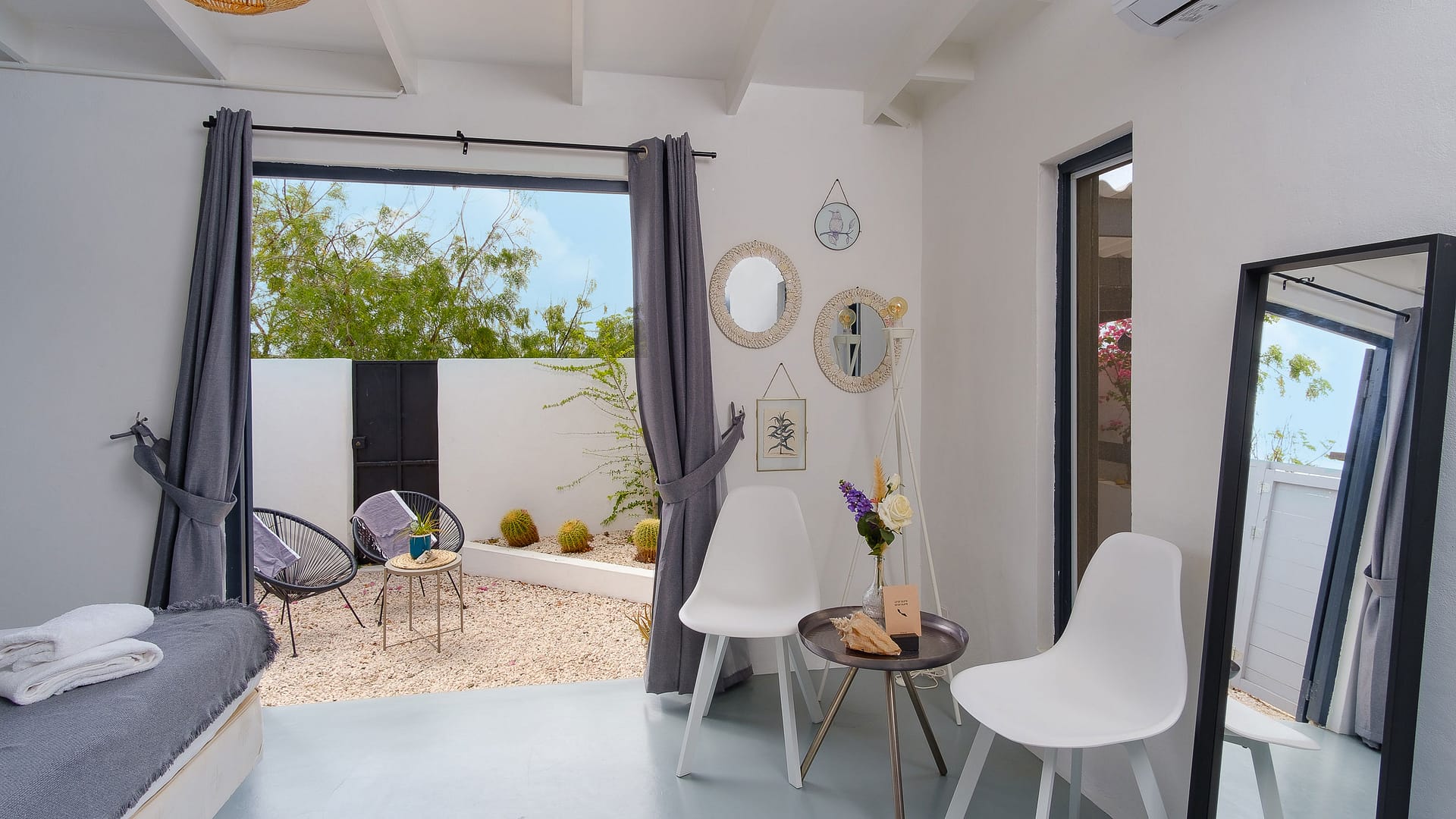 Dit ruime appartement van ca. 60 m² is ontworpen voor ultieme ontspanning. Met een eigen afgesloten binnenterras geniet je hier in alle privacy van de rust, terwijl je de vogels hoort fluiten en de wind door de palmbomen voelt waaien.