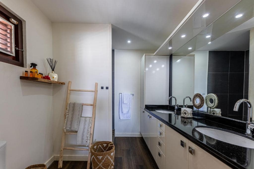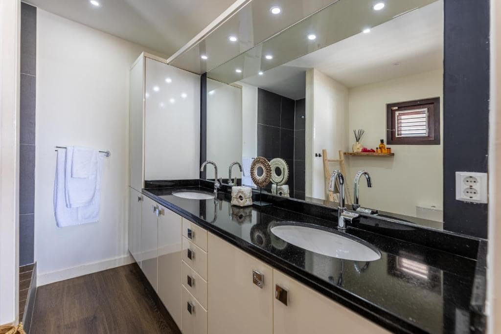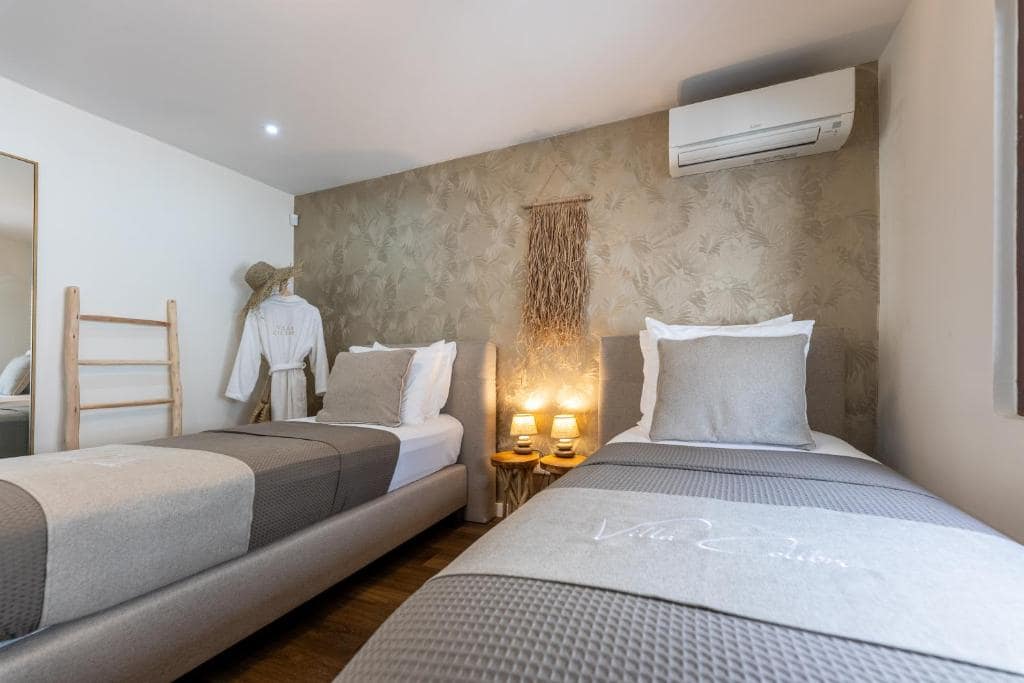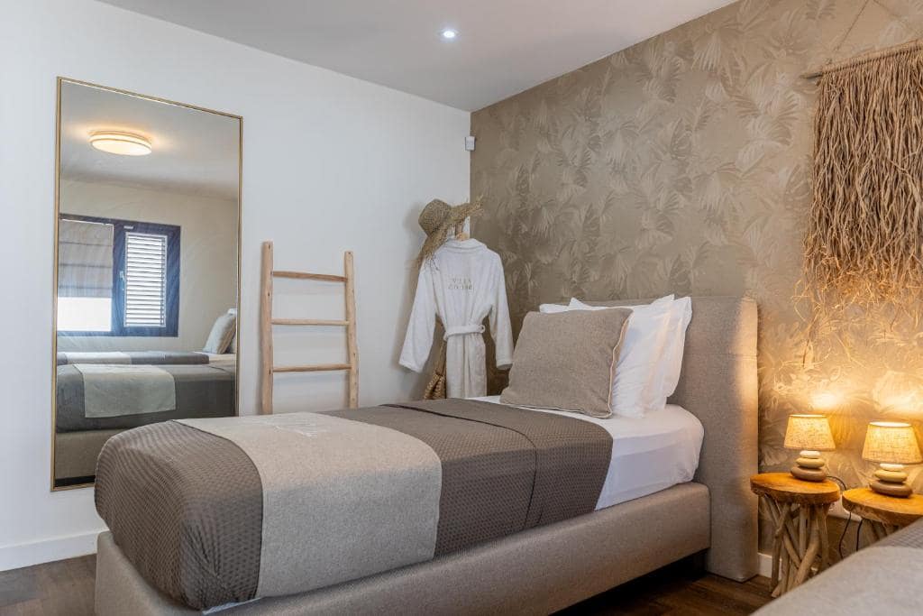 De hoofdvilla van Colibri beschikt over drie prachtige slaapkamers en twee badkamers. De master bedroom is voorzien van een kingsize bed (180×210) en een eigen badkamer met toilet, douche en wastafel. De tweede slaapkamer heeft een tweepersoonsbed (180×210) en de derde slaapkamer is uitgerust met twee eenpersoonsbedden (90×210), die desgewenst kunnen worden samengevoegd tot een tweepersoonsbed.