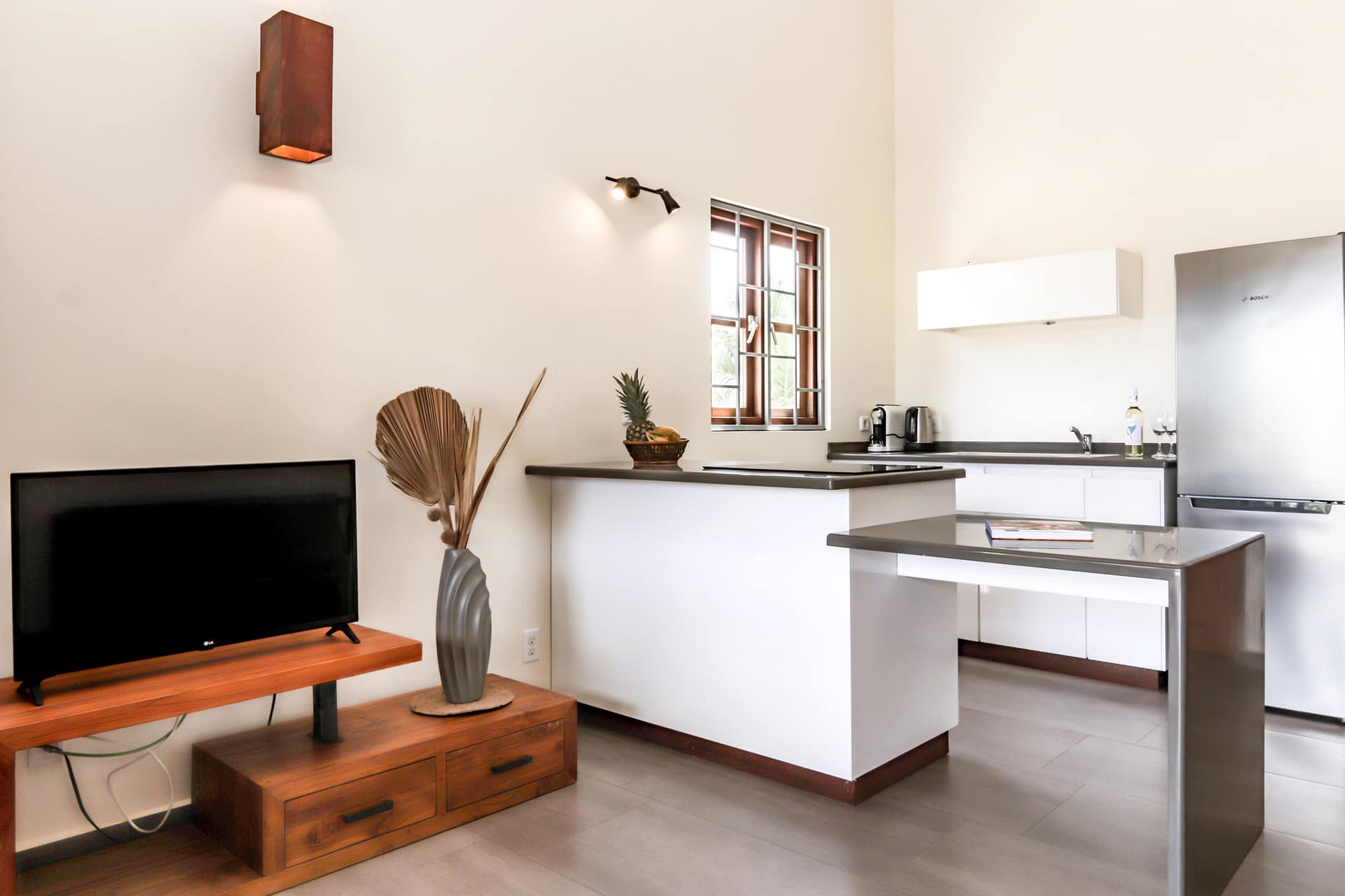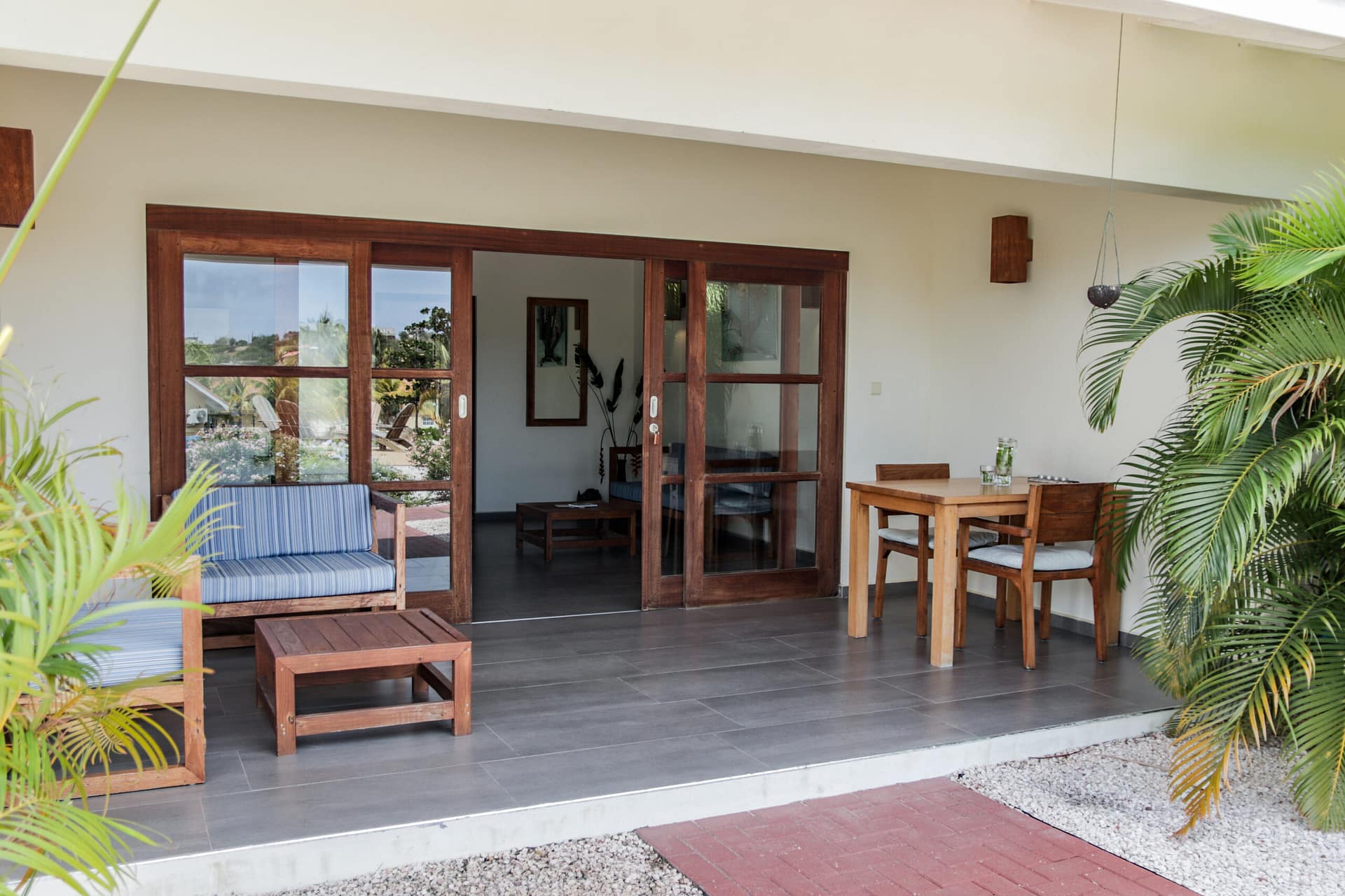 De lodge is smaakvol ingericht met Indonesische teakhouten meubels en heeft een moderne uitstraling. Elke unit is voorzien van airconditioning, gratis WiFi, en een eigen terras. Bij aankomst liggen bed- en keukenlinnen voor u klaar, en de wekelijkse schoonmaakservice zorgt voor schone handdoeken. De volledig uitgeruste keuken heeft alles wat u nodig heeft, inclusief een oven, inductiekookplaat, koelkast, koffiezetapparaat en waterkoker.