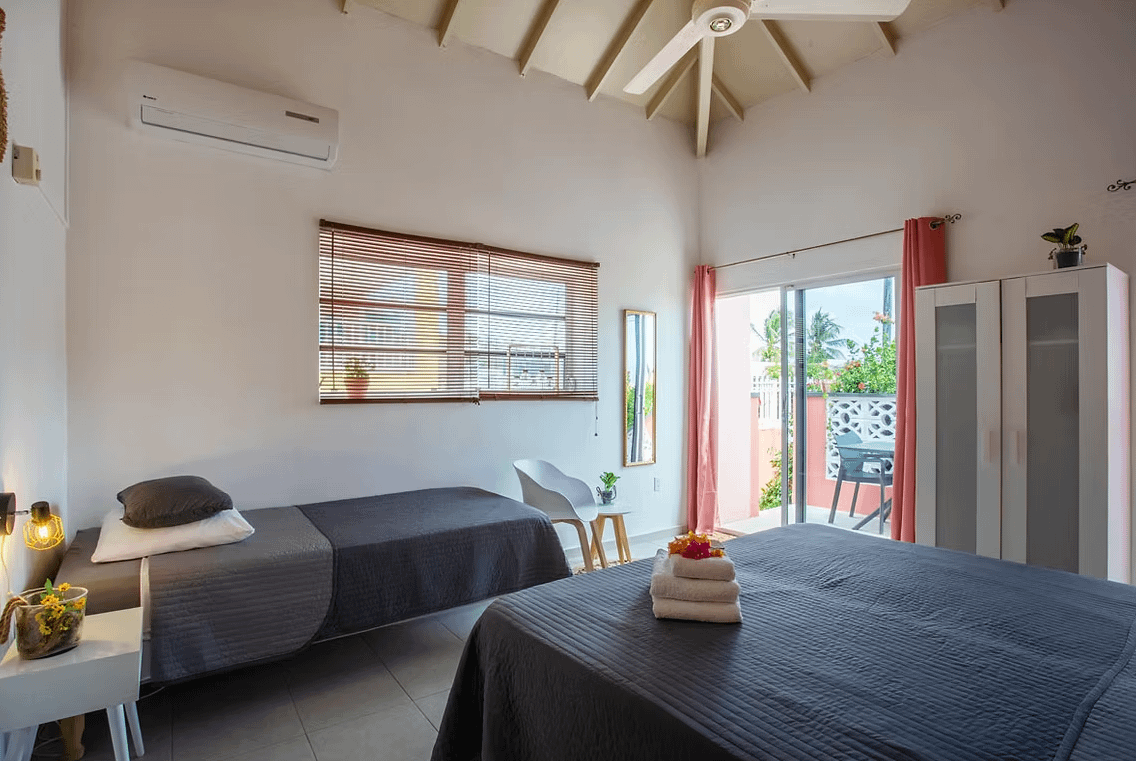 Ontdek een comfortabel en sfeervol verblijf voor maximaal drie personen op Curaçao in het 3-persoonsappartement Sunset bij Happy Curoase. Dit appartement combineert een tropische uitstraling met een praktische indeling, waardoor het ideaal is voor koppels, kleine gezinnen of vrienden die samen het eiland willen verkennen.