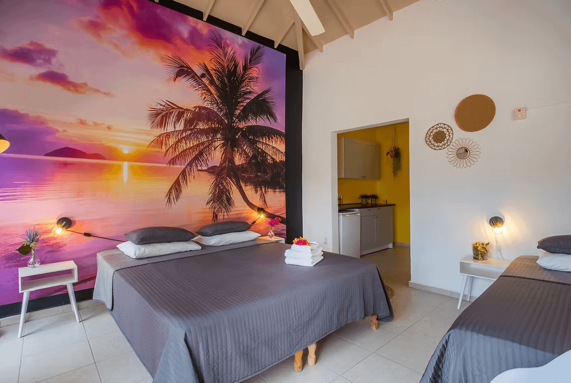 Sunset ligt in een rustige en centrale wijk van Willemstad, waardoor je binnen korte tijd bij de mooiste stranden van Curaçao bent zoals Mambo Beach en Jan Thiel. Ook restaurants, winkels en supermarkten zijn eenvoudig te bereiken. Het mini-resort biedt een ontspannen sfeer met een tropische tuin, een buitenkeuken en een gezellige zithoek rond het zwembad — een perfecte plek om te relaxen na een dag op het eiland.