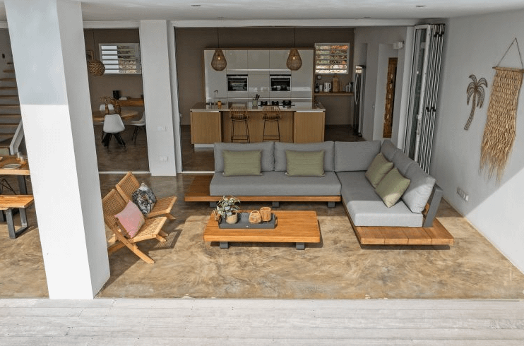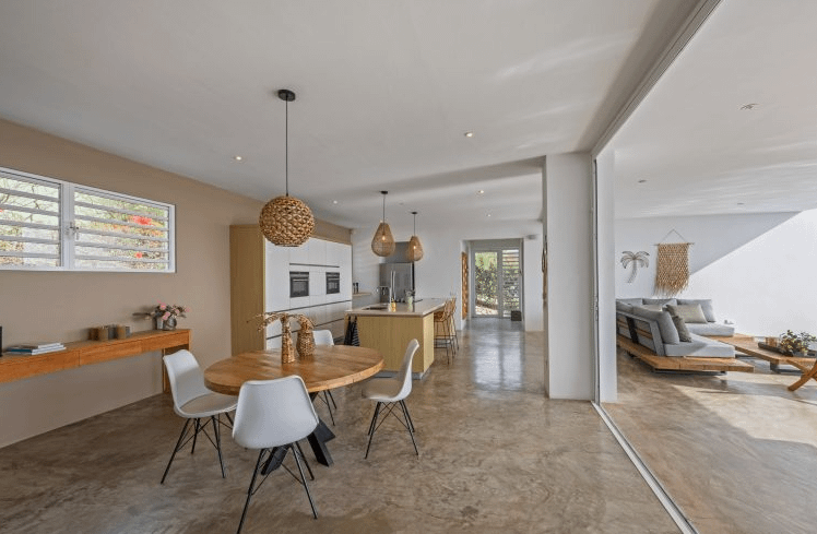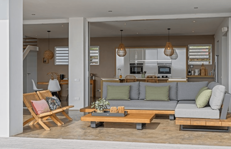 De villa biedt plaats aan maximaal 8 personen en beschikt over vier ruime slaapkamers, meerdere moderne badkamers en een lichte, open leefruimte met volledig uitgeruste keuken. Dankzij de grote openslaande harmonicadeuren vloeien binnen en buiten moeiteloos in elkaar over, waardoor je direct geniet van het tropische buitenleven.