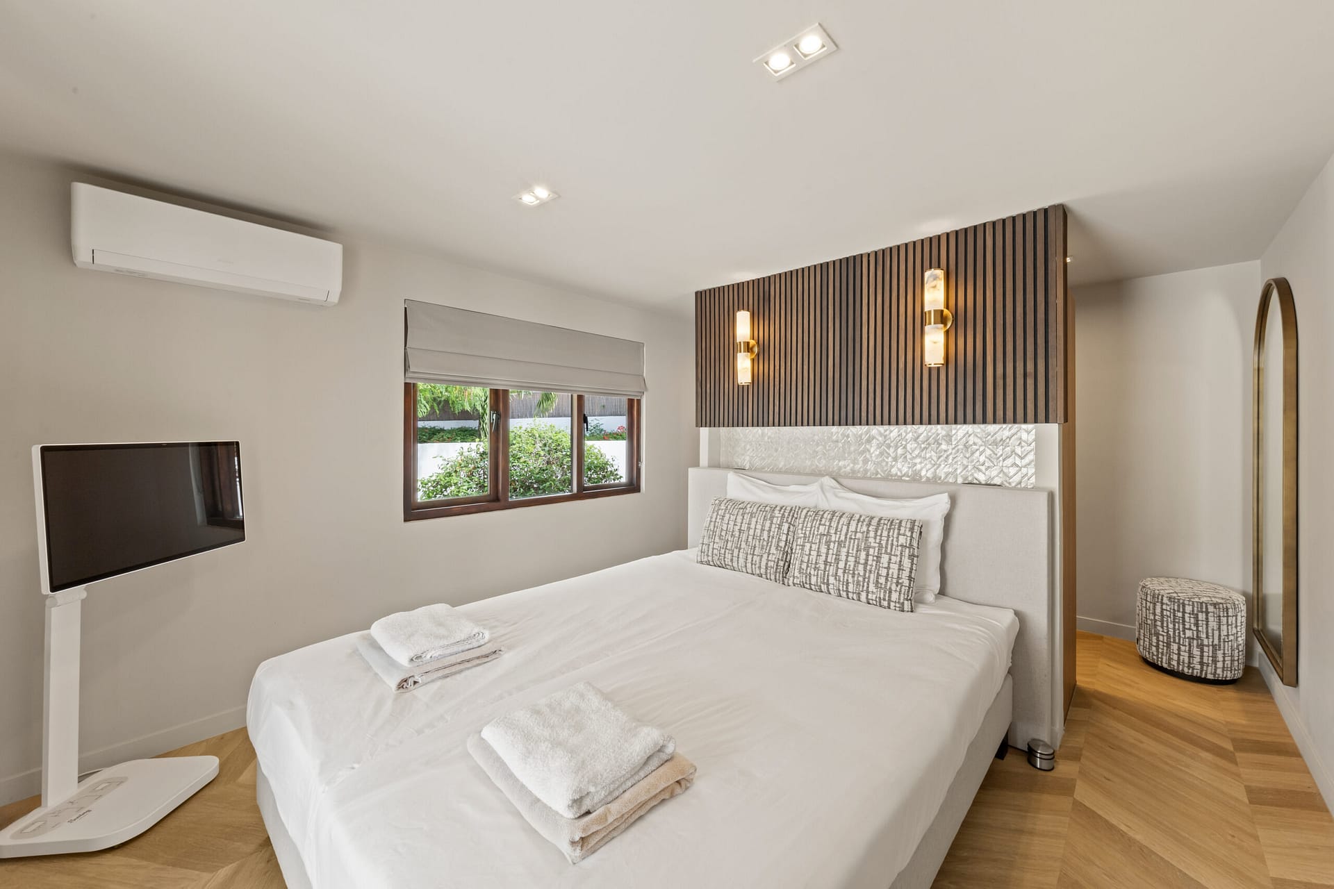 Een van de meest opvallende kenmerken van Villa Yellow Lotus is de idyllische omgeving, waar u altijd een zacht briesje door de palmbomen hoort ruisen. Of u nu ontspant op de porch, lekker luiert op de zonnebedden op het pooldeck bij het privézwembad of buiten dineert op het ruime terras, u waant zich in pure rust. Villa Yellow Lotus ligt hoger ten opzichte van de omliggende percelen waardoor optimale privacy is gewaarborgd.